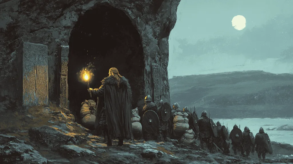 The following year, Bardr led a significant military expedition that solidified his reputation as a “Viking sea-king”. In 873 CE, he commanded a great fleet from Dublin (Áth Cliath) and sailed westward to the Kingdom of Munster. This campaign was notable for its audacity and unconventional tactics. The Annals of Inisfallen record that Bardr “plundered Ciarraige Luachra underground, i.e., the raiding of the caves”. This likely referred to the plundering of ancient tombs for treasure. In this, Bardr seemed to revert to older Viking tactics, echoing the 863 CE expedition led by his father Imair and uncles Amlaib and Auisle into the Boyne Valley, where they had raided megalithic tombs such as Newgrange and Knowth.