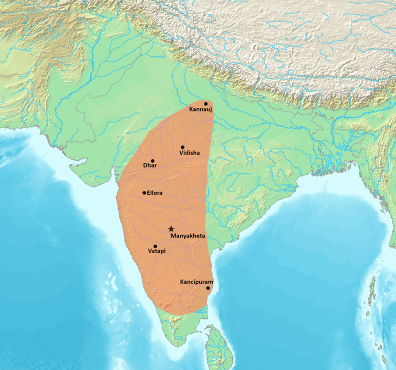 The rise of the Rashtrakutas is closely tied to Dantidurga, who from his seat at Achalapura (now Ellichpur, Maharashtra), challenged the prevailing Chalukya power. By defeating Kirtivarman II of Badami in 753 AD, Dantidurga ended the main branch of Chalukya rule, marking the beginning of Rashtrakuta ascendancy in the Deccan. This huge victory was not only military but also symbolic, as Dantidurga performed the Hiranyagarbha ritual to legitimize his rule.