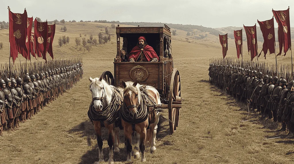 By the end of 1277, Constantine could no longer ignore the threat posed by Ivaylo’s rebellion. The emperor finally decided to take action, gathering a small army to confront the rebels. However, his physical condition severely hampered his ability to lead effectively, as he had to travel in a chariot due to his paralysis.