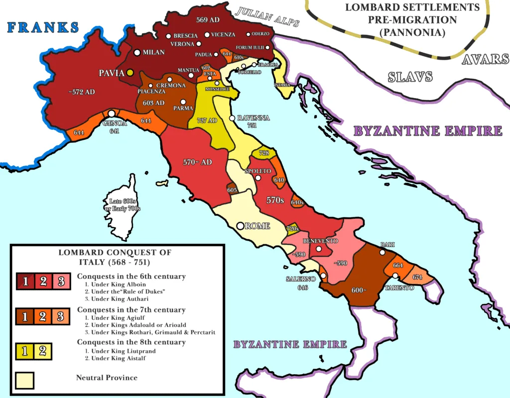 - Byzantine Weakness: The Italian Peninsula had been left vulnerable following the devastating Gothic War (535-554 CE) between the Byzantine Empire and the Ostrogothic Kingdom.