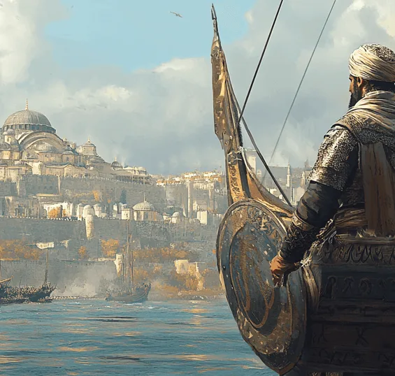 Civil war and palace intrigue within Byzantium shaped the earliest moves. The Arabs tried to exploit the empire’s chaos by allying with Leo III the Isaurian, a powerful general who seemed open to negotiation but ultimately deceived them to gain the throne and unite the city’s defense. As Maslama led the Umayyad army from Asia Minor into Thrace, they ravaged the countryside and cut Constantinople off from its hinterlands, surrounding it on land with dual siege walls. By early September, the full weight of the Arab fleet was brought to bear, aiming to block the city’s lifeline – the Bosphorus and Golden Horn – from seaborne support.