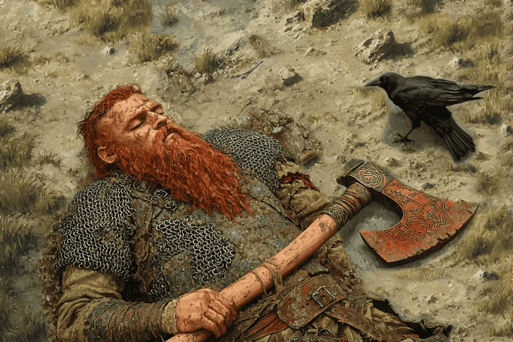 After their victory, Sigurd ordered his men to decapitate their fallen enemies and tie their heads to their saddles as trophies. However, this act of triumph turned into poetic justice when Máel Brigte’s severed head grazed Sigurd’s leg with its tooth as he rode back to Orkney. The wound became infected, leading to Sigurd’s death—a fittingly ironic end for a leader whose cunning often bordered on treachery.