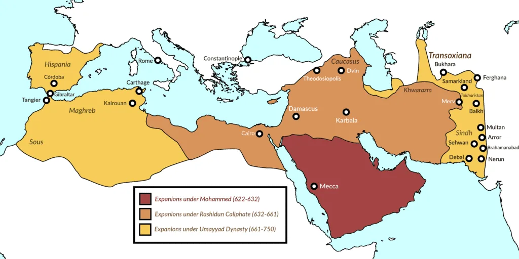 Under Mu’awiya and his successors, the Umayyad Caliphate embarked on a period of rapid expansion. They incorporated vast territories into their realm, including the Caucasus, Transoxiana, Sindh, the Maghreb, and eventually, the Iberian Peninsula.