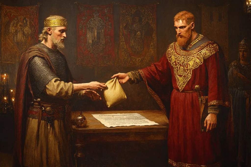 The following year, Olaf and Thorkell besieged Canterbury, capturing Archbishop Ælfeah. When Ælfeah refused a ransom, the Vikings pelted him to death with animal bones – a grisly act that later haunted Olaf’s conscience.