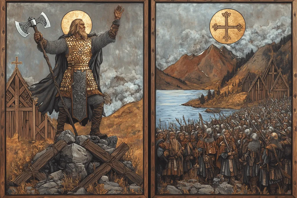 Olaf destroyed pagan temples, outlawed sacrifices, and even starved northern rivals by banning grain sales to them. One iconic episode at Gulbrandsdal saw Olaf challenge a Thor idol. As pagans marveled at a symbolic sunrise (representing Christ), his men smashed the idol, revealing rats and rot-a staged metaphor for paganism’s decay. Such theatrics, combined with brute force, spread Christianity but alienated traditionalists, sowing seeds for his downfall.